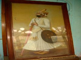 | Description / विवरण | Full length, portrait of Maharaja Man Singhji 1803-1843 AD , facing right, holding a long straight sword with both hands, a shield hanging from his shoulder. He is wearing long white jama, a turban and he is adorned with jewels. |