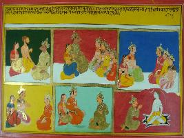 | Description / विवरण | Miniature painting based on Mahabharat - Adi parva depicting that king Kashayap had five sons and as they grew, one of his son worshipped Shiv achieved the been from Shiv. |