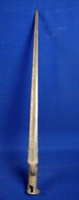 | Description / विवरण | Three faceted, long iron Sangeen bayonet , painted with silver colour. The colour is flaking off at some places. |