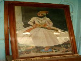 | Description / विवरण | Full length portrait of Maharaja Takhat Singhji, the ruler of Marwar sitting on a throne, holding a sword, his right hand on the hilt and left hand on scarbated. He is wearing a turban and jewels. |