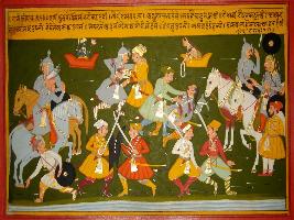 | Description / विवरण | Miniature painting based on Prithviraj Raso depicting war between armies of Prithviraj and Jaichand. It also depicts heavy destruction of valuables and life in war. |