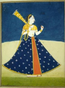| Description / विवरण | Miniature painting depicting Maha Rasa Lila scenes. It depicts a gopi in standing pose with Turoi in right hand and facing left. |