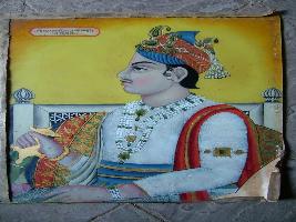 | Description / विवरण | It is a painting of Sawai Raja Jai Singh. He has been seen fully ornamented, a garland, red scarf on left shoulder, floral motives are shown. |
