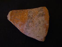 | Description / विवरण | It is a red slipped, medium fabric, well fired potsherd. The painting is mainly in wavy pattern in black colour on red background. It is associated with OCP. |