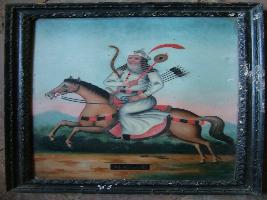 | Description / विवरण | It is painting of king Bhalanjan. He is riding horse in white dress with white beard. Bow and arrow are shown. |