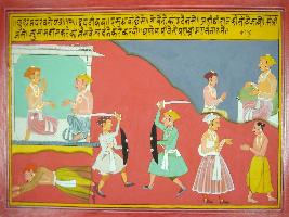 | Description / विवरण | Miniature painting based on Mahabharat - Udyam parva depicting Draupadi is saying that it makes no sense asking him for villagaes, houses, now he is like a shopper who is charging for everything. If Brahman gets polluted then one have to kill him for maintaning dharma. |