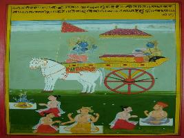 | Description / विवरण | Miniature painting based on Shri Bhagwat Gita. It depicts Krishna preaching Arjun that those worshipper with all his belief worship image of god, their belief is pure and firm. |