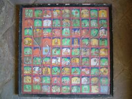| Description / विवरण | It is a painting of Gyan Chopar. A long snake, ladder is shown. Male, female, cow, Srikrishna, snake and ladder, Rajogut satogut are shown. It contains 81 pictures. |