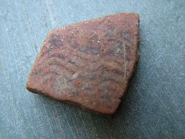 | Description / विवरण | Undiagonistic redware potsherd is having black coloured wavy line designs on red surface. It belongs to associated ware of O.C.P. culture. It is wheel made and well fired. |