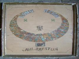 | Description / विवरण | It is a cresent moon like painting. Male is shown on crescent moon. LONG REIGN is written at top. JAHLRAPATUN is written at bottom lower portion of painting . |