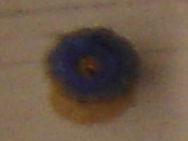 | Description / विवरण | Small bead of Lapis lazuli, with a hole and serrated edge on the round body. |