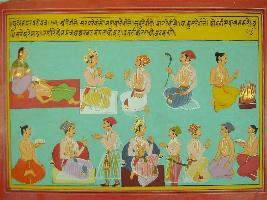 | Description / विवरण | Miniature painting based on Mahabharat - Udyam parva depicting one should not sleep with women, with snakes, with enemies, with faith and with age. They can kill anyboby with intelligency and homa mantra and wealth is the best answer to them. |