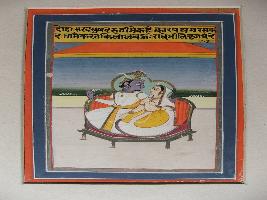 | Description / विवरण | It is a painting of Ashavani month. Srikrishna and Radha are shown white dressed. Some inscription is written on top. Radha and Krishna are shown together. |