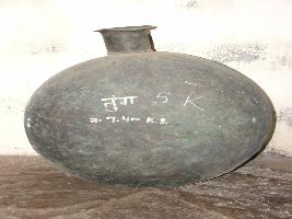 | Description / विवरण | It is a pottery. It is made from copper. It is in watermelon shape. It is used to store water. |