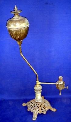 | Description / विवरण | Brass carbon lamp with long stand. The base is having jali floral designs. |