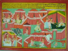 | Description / विवरण | Miniature painting based on Mahabharat - Udyam parva depicting both Duryodhan and Yudhisthir came to Shalya for help. But before Yudhisthir, Duryodhan reached and compel Shalya to fight for Kauravas. |