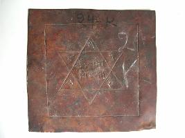 | Description / विवरण | It is a square astrological instrument of Vishnu. Two triangle cross to each other at center. Om Vishnu is written on top. |