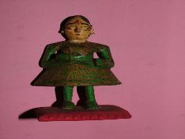 | Description / विवरण | It is a toy showing a female wearing green colour costume on red base. |