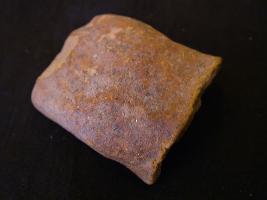 | Description / विवरण | It is a part of a handle. It is treated with red slip and also painted in black colour but the colour is faded. It is associated with OCP. |