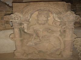| Description / विवरण | An independent sculpture of Vaishnavi standing in tribhanga mudra, attributes are missing. The other hand holding a mace, one hand holding a chakra, and one hand is broken. Her breast is chopped off. She is wearing necklace, earrings, Kirti mukuta and vanmala. Garuda her vehicle is also seen right below. |