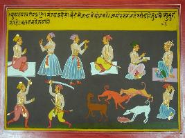 | Description / विवरण | Miniature painting based on Mahabharat - Udyam parva depicting Sanjay telling king that its not good to leave your enemy alive and fight with him as one fights in war. |