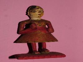 | Description / विवरण | It is a wooden toys of a child female, shown standing, wearing red costume. |
