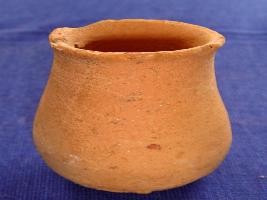 | Description / विवरण | Tiny pot of terracotta with an elongated body and broken rim. It is not bearing any painting on both inner and outer side. The surface is rough. |