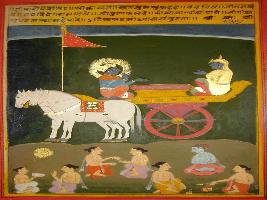 | Description / विवरण | Miniature painting based on Shri Bhagwat Gita. It depicts Krishna preaching Arjun that whoever does yoga and penance for them i am always there. |