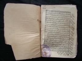 | Description / विवरण | this book hand written by Muhammad Amir in 1855 A.D. in Persian language and Nastaliq style. It gives the details of Daman-I- Saba Pahunch Saki means the fresh air created by God for his followers. This text written is black ink on white ground within golden flower motifs. |