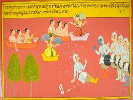 | Description / विवरण | Miniature painting based on Mahabharat - Gada parva. On the painting some Gandharva and Apsaras are seen in dancing and singing position white Pandavas are seen in the lower part of the painting. |