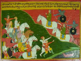 | Description / विवरण | Miniature painting based on Mahabharat - Virat parva ro patra depicting fighting scene between two armies |