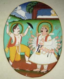 | Description / विवरण | Miniature painting depicting Parshuram, one of the incarnations of Vishnu fighting with Sahastrabahu. |