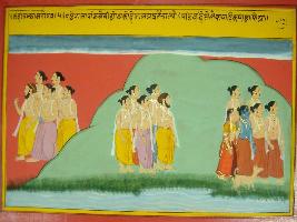 | Description / विवरण | Miniature painting based on Mahabharat - Mahaprasthan parva depicting Pandavas with Draupadi moving foward to Malaya hill and Kripacharya with other sages returned after meeting them. |