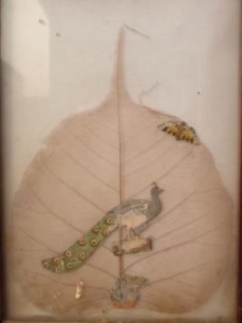 | Description / विवरण | Miniature painting made on Pipal leaf depicting a peacock and butterflies. |