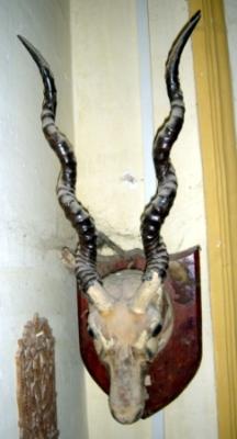 | Description / विवरण | Head of a reindeer with horns. It is preserved with taxidermy technique. The left ear is missing. |