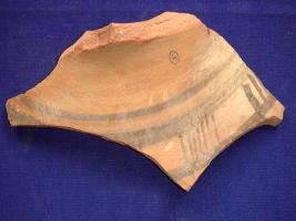 | Description / विवरण | Potsherd of black on red ware, few black lines are visible. It is a waist part. It is a sherd of Fabric A. |