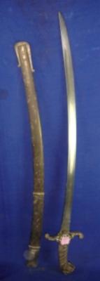 | Description / विवरण | Iron Kirch Sword having slightly curved blade and brass hilt in the shape of lion head. The scabbard is also made of brass. |