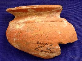 | Description / विवरण | Potsherd of red ware. Surface is very rough, husks can be seen on the surface of the pottery, clay incrustation over some part. |