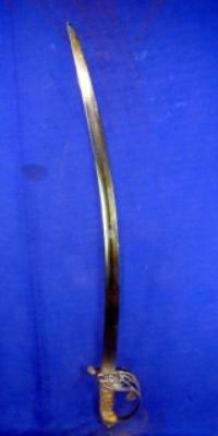 | Description / विवरण | Iron Kirch Sword with slightly curved blade. The chinkedar hilt is made of brass with inlay ivory work. |