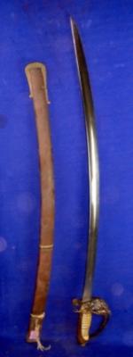 | Description / विवरण | Iron Kirch Sword with slightly curved blade and a simple ivory hilt having inlay work and a broad knuckle guard. The scabbard is made of copper and without any designs. |