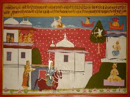 | Description / विवरण | Miniature painting based on Prithviraj Raso depicting friends of Sanjogita says about the strength and bravery of Prithviraj who can defeat the Devtas also. After hearing this Sanjogita fall in love to Prithviraj. |