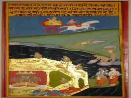 | Description / विवरण | Miniature painting based on Sarangadhar depicting Ravan in his palace in Lanka and vanar Sena making bridge over the sea and attacking on Lanka with Ram and Lakshman. |