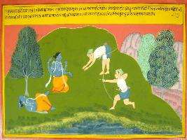 | Description / विवरण | Miniature painting based on Mahabharat - Musal parva. The painting depicts Krishna resting under the tree and vyadh shooting arrow in the feet of Krishna. As vyadh comes to know about his guilt he asks for mercy for his crime. Finally vyadh sees the form of Vishnu. |