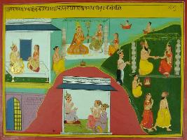 | Description / विवरण | Miniature painting based on Mahabharat - Adi parva depicting the marriage ceremony of Bichitravijaya and Vyas while Vasuki also seen in the painting. |