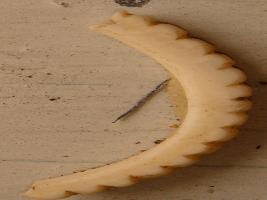 | Description / विवरण | Broken piece of shell bangle, nice specimen of Indus shell works. Bangle is carved in the shape of arch in the outer edge, while the inner is plain and round. |