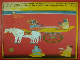 | Description / विवरण | Miniature painting based on Shri Bhagwat Gita. It depicts Krishna asking Arjun about Brahma, Adhyatma, Adhibhoot and adhidaiv. |