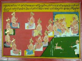 | Description / विवरण | Miniature painting based on Mahabharat - Udyam parva The painting depicts Duryodhan and his brothers where Dhritrashtra says about the son of Virat, Uttar who compelled Duryodhan to leave the battle field. Then the painting refer about the conversation of Kauravas. |