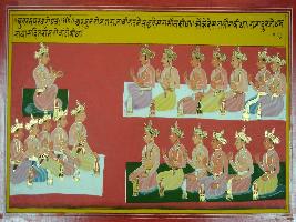 | Description / विवरण | Miniature painting based on Mahabharat - Udyam parva. The painting depicts king Duryodhan is talking with his brother. While the painting also refer about Arjun who is in Virat Nagar. |