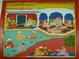 | Description / विवरण | Miniature painting based on Kalila Damana depicting Barajvi telling about different human behaviours depicting different modes through which people entertain themselves as some one drinks, some one passes time with women etc. The painting has Mughal influence. |