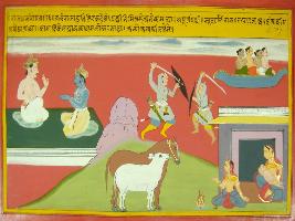 | Description / विवरण | Miniature painting based on Mahabharat - Rajdharma parva depicting Yudhisthir saying about dharma and adharma. |
